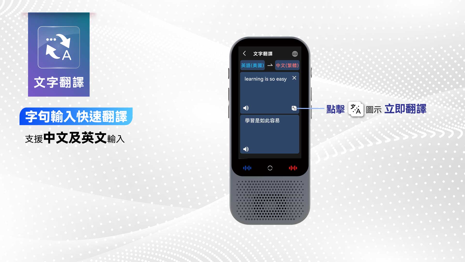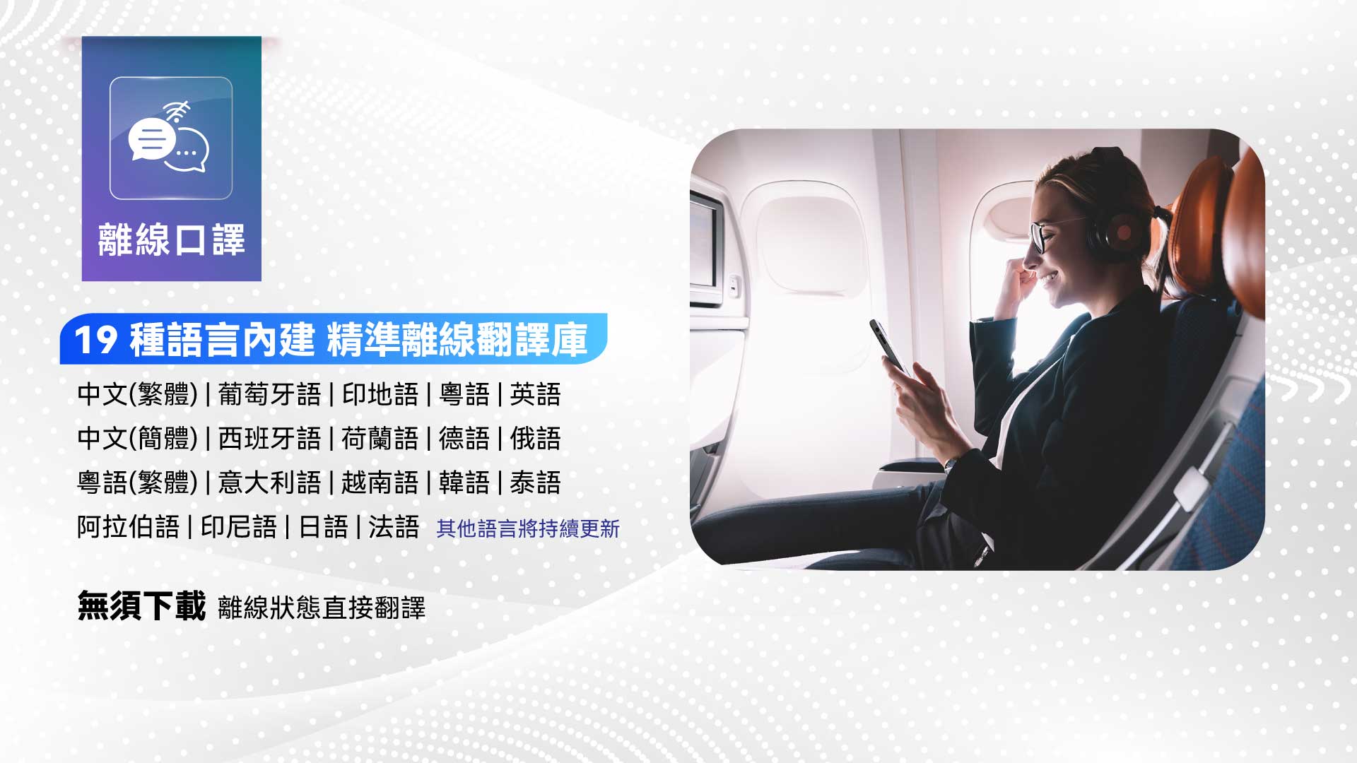 - 📶 離線口譯:無須下載,19種語言內建,精準離線翻譯